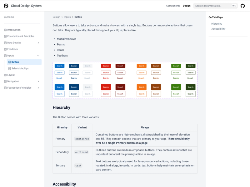 We tried all of these, but ended up adopting Nextra as our solution. This is the most accessible solution, and we could work closer with developers.Design System Documentation example using Nextra (buttons)
