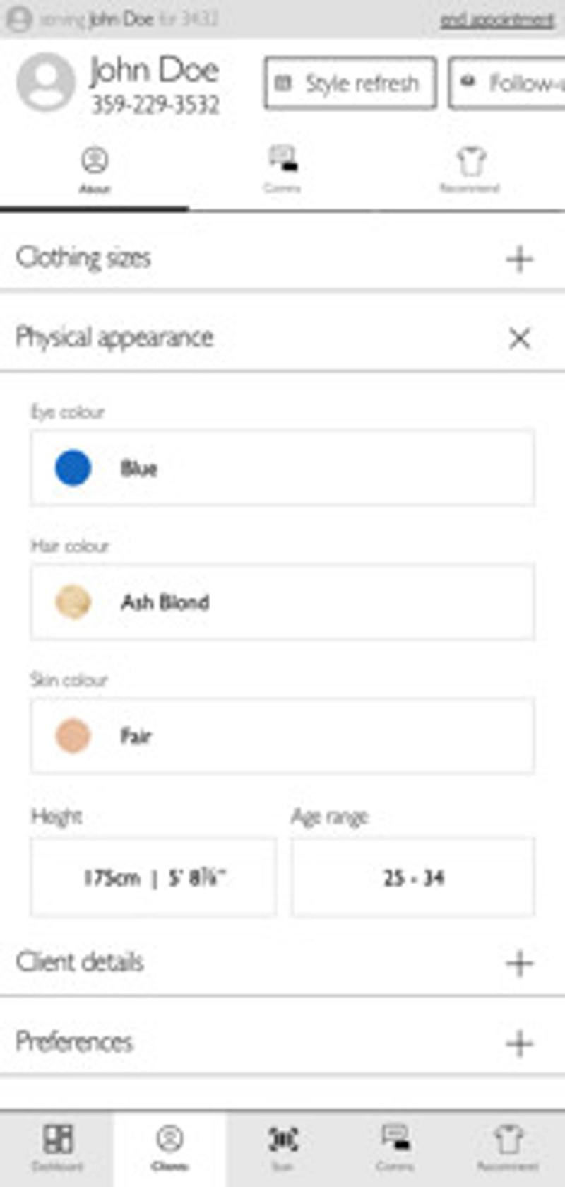 The solution which I started designing was a web app to be used mostly on mobile, which the stylists could carry around to help with their work.