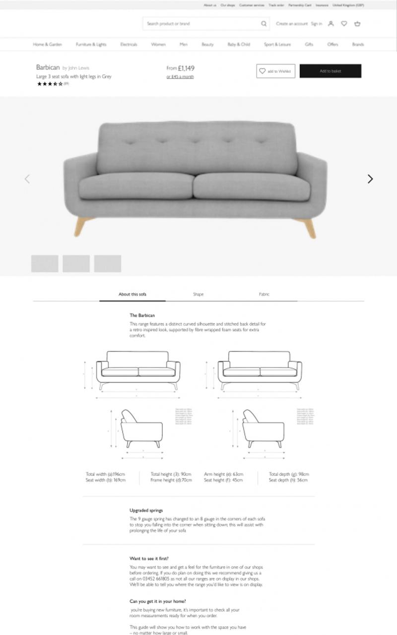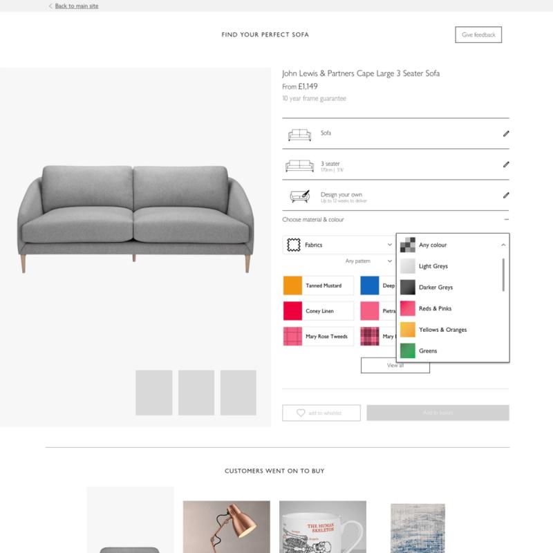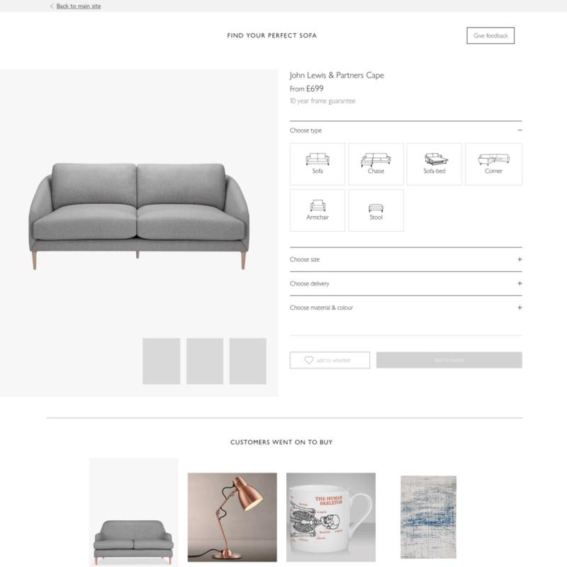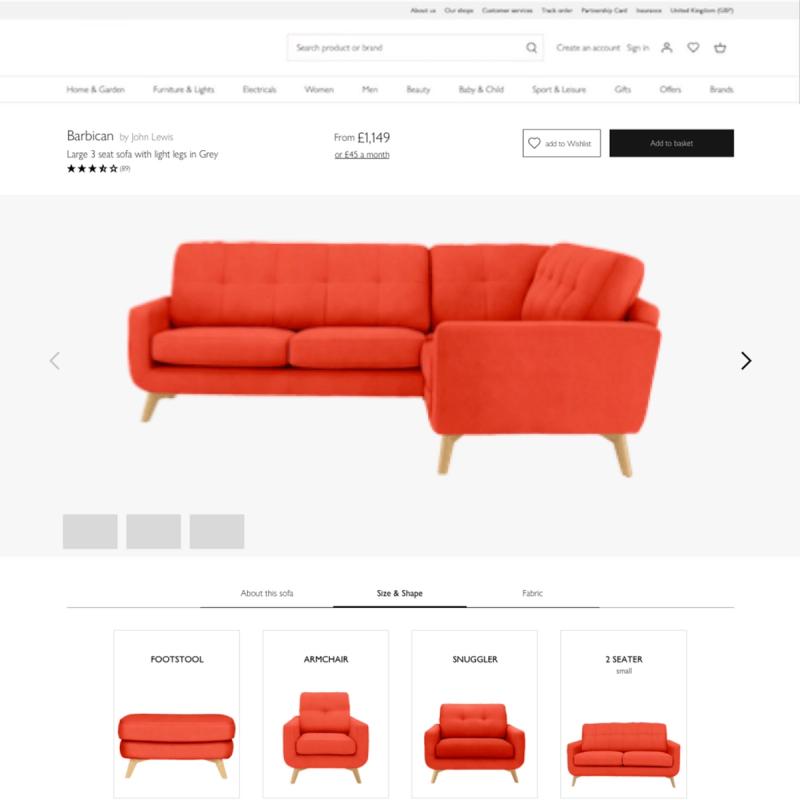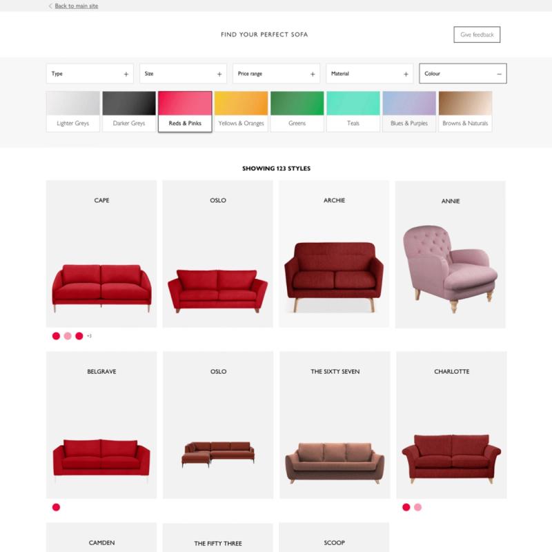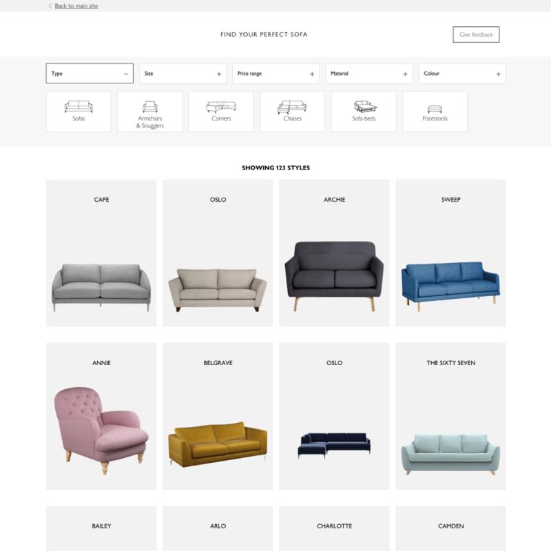 The current online journey is generic to all products and doesn’t cater to the specific needs of someone looking for the perfect sofa.