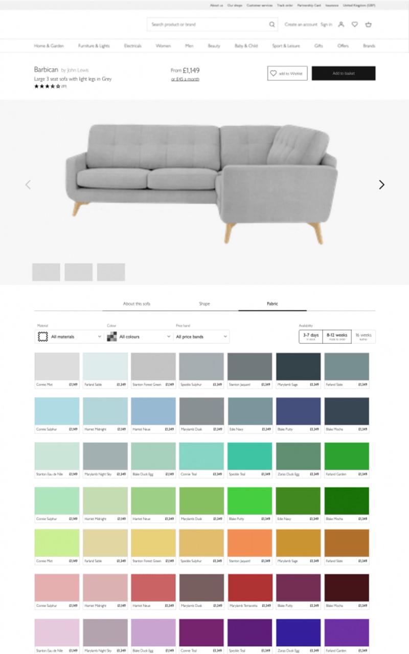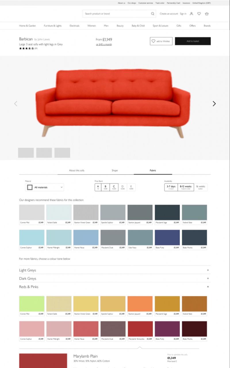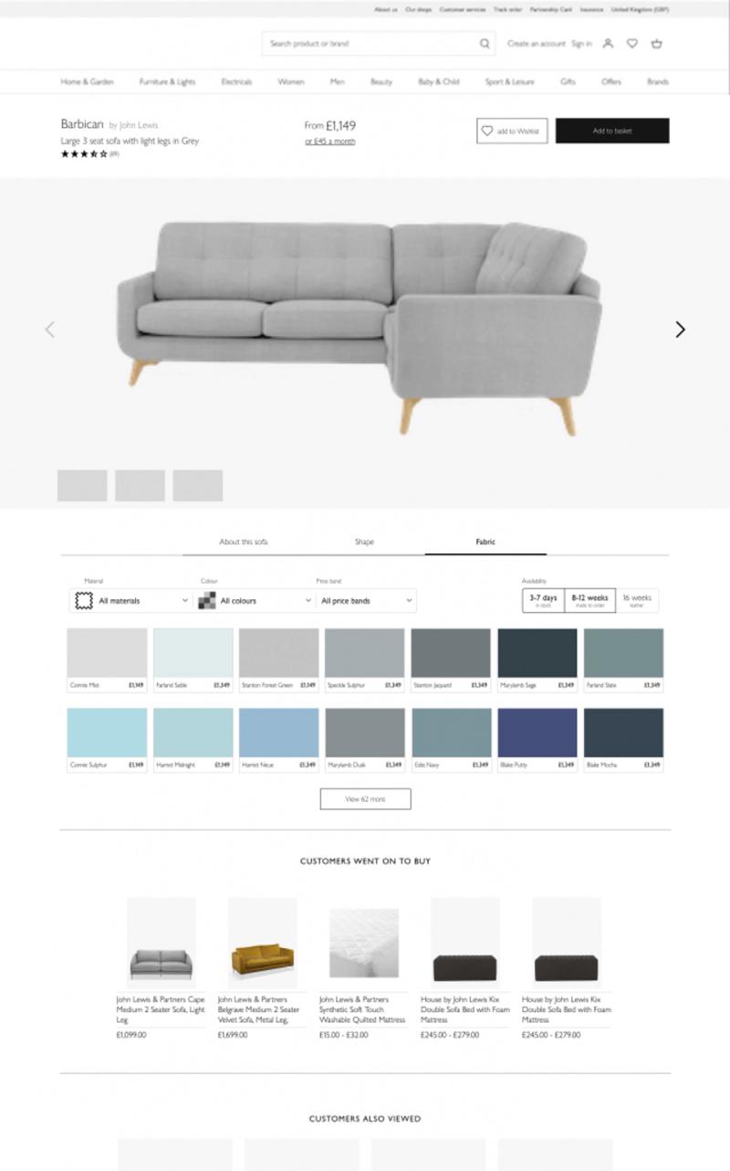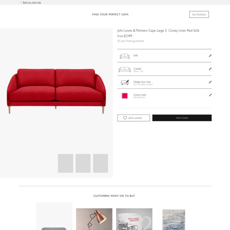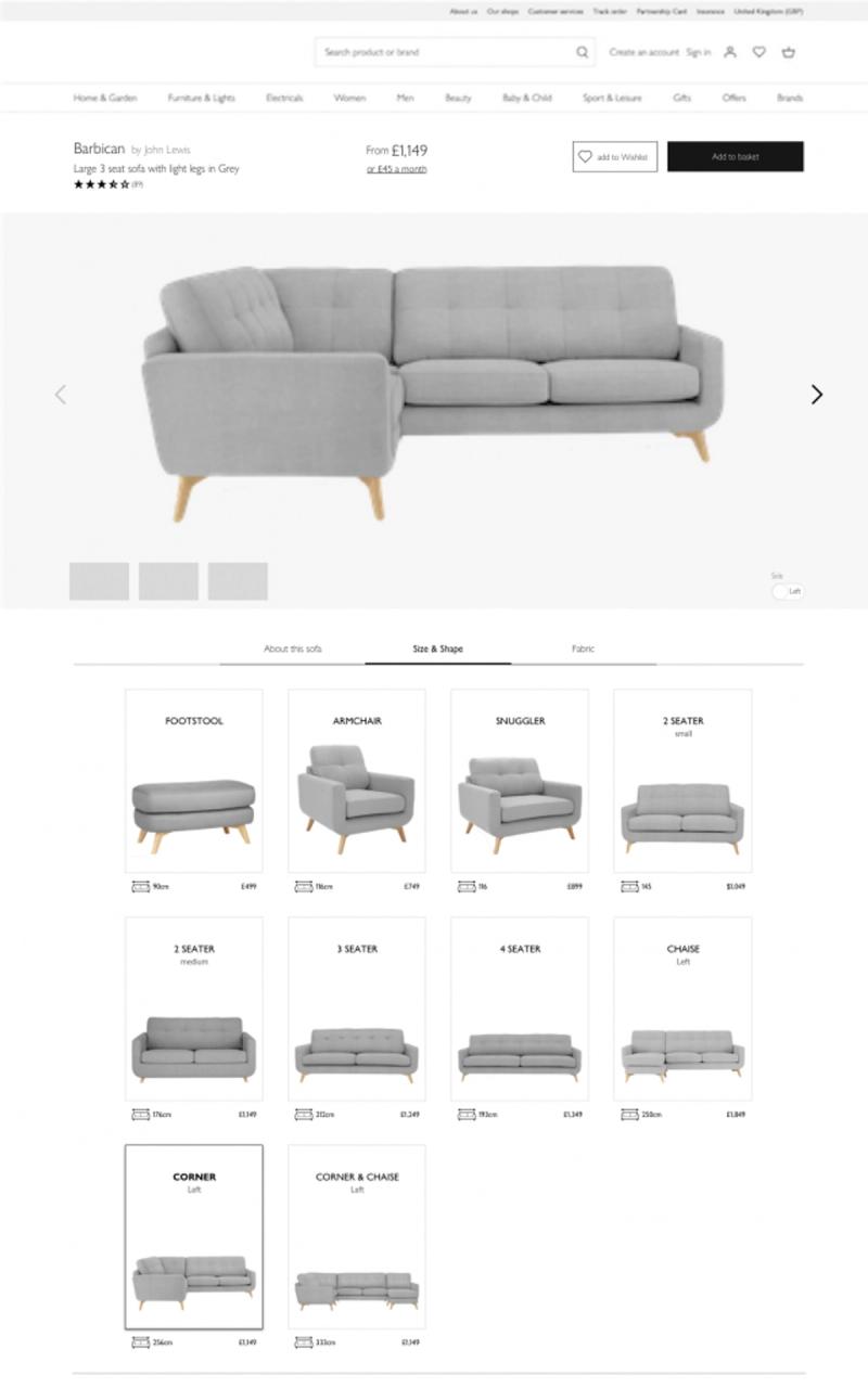The current online journey is generic to all products and doesn’t cater to the specific needs of someone looking for the perfect sofa.